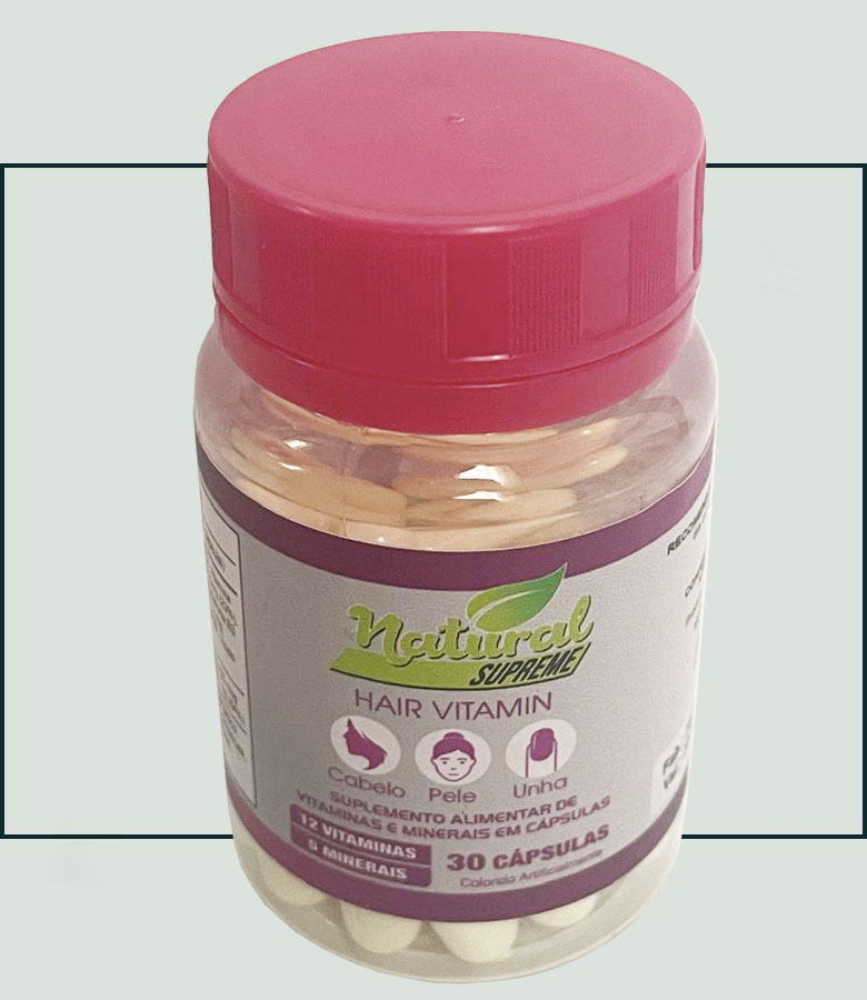 A poderosa fórmula de Hair Vitamin irá deixar seu cabelo e unhas mais fortes através da Biotina composta em nossa fórmula e